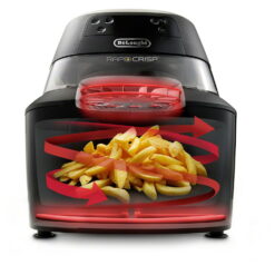 The De’Longhi Rapid Crisp low-fat air fryer features five pre-set cooking programs allowing you to create all your family favorites. With the free recipe App for download containing over 200 new recipes from all around the world, you and your family can keep finding new favorites. This convenient air fryer features a rapid surround heating system to guarantee that your food is crispy on the outside and tender on the inside. Have fun creating tasty yet healthy meals the whole family will love!