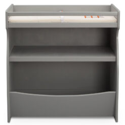 Sleek, stylish and functional, the 2-in-1 Changing Table and Storage Unit from Delta Children is a must-have for your nursery. With an abundance of storage, it features a changing station on top with a changing pad and buckled safety strap. High sides surround the changing area for added security, so baby is protected during diaper changes. Open shelves underneath hold fresh diapers, wipes and changes of clothes. Built to last for years beyond diaper changes, this gorgeous storage unit matures with your child – simply remove the included changing pad and use the top as an extra shelf for books, stuffed animals and more.