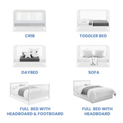 - 6-IN-1 CONVERTIBLE CRIB: 6-IN-1 CONVERTIBLE CRIB: Crib converts to toddler bed, daybed, sofa, full size bed with headboard and footboard and full size bed with headboard only ( Daybed/Toddler/Sofa Rail #W162725, Full Size Bed Rails #0050 sold separately) | Available in multiple colors