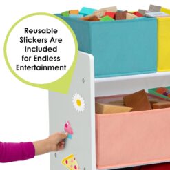- REUSABLE STICKERS: Kids will love arranging the reusable vinyl cling stickers to the sides of this organizer to create a new story every time they play