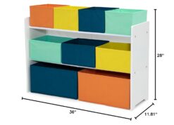 Easily organize your child’s toys with the Deluxe Multi-Bin Toy Organizer with Storage Bins from Delta Children. Featuring nine (9) toy bins in varying sizes and bold colors, it offers a stylish storage space for toys of all shapes and sizes. Designed to be the perfect kid-sized height, it allows your child to clearly view and select their favorite toys—and makes it easy for them to clean up when they’re done playing. Constructed of strong and sturdy wood, the Deluxe Multi-Bin Toy Organizer with Storage Bins is a lasting piece that will encourage years of imaginative play.