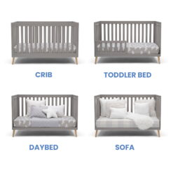 - GROWS WITH BABY: Crib converts to a toddler bed, daybed and sofa (Daybed/Sofa Rail included; Toddler Guardrail #0094 sold separately)