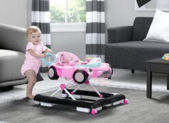 This baby walker’s versatile design allows it to grow with your little one. It easily transitions from an activity walker to a walk-behind walker.