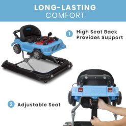 Make baby’s first steps an adventure of interactive learning and fun with the Jeep Classic Wrangler 3-in-1 Grow With Me Walker. Designed to resemble a classic Jeep, this innovative activity walker adapts to your growing child’s walking and playing needs. Its 3-in-1 design features a standard baby walker mode, push – behind car and a rolling toy car. A must-have for new parents, its adjustable seat height adapts to baby’s growth while interactive features stimulate fine and gross motor skills.