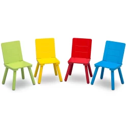 A must-have for playtime, crafting time or just about any activity, this Kids’ Table and Chair Set from Delta Children is oh-so sturdy and sized just right for growing children. Not only does it provide the perfect place for little ones to play but it also comes with four chairs so all their friends can share in the fun. The sleek design and contrasting colored chairs with grooved detailing on the backs effortlessly complement any décor. It’s a kids’ table that’s fit for shared spaces, playrooms, kids’ bedrooms–basically any room in the house. Constructed for serious play, this table and chair set is made from sturdy wood for long-lasting use.