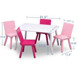 Delta Children Kids Table and Chair Set (4 Chairs Included) – Ideal for Arts & Crafts, Snack Time, Homeschooling, Homework & More – Greenguard Gold Certified, White/Pink
