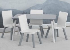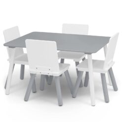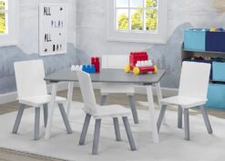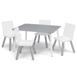 Delta Children Kids Table and Chair Set (4 Chairs Included) – Ideal for Arts & Crafts, Snack Time, Homeschooling, Homework & More, Grey/White