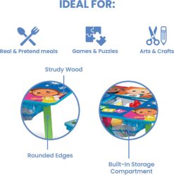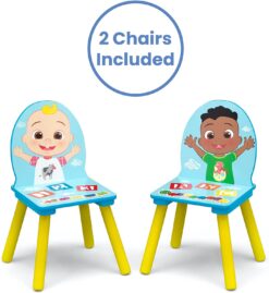 Delta Children Kids Table and Chair Set with Storage (2 Chairs Included) – Greenguard Gold Certified – Ideal for Arts & Crafts, Snack Time, Homeschooling, Homework & More, CoComelon