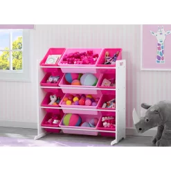 Delta Children Kids’ Toy Storage Organizer with 12 Plastic Bins, White/Pink