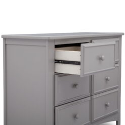 This 6 Drawer Dresser by Delta Children in Grey is as pretty as it is functional. Featuring spacious drawers with wooden knobs, this strong and sturdy piece will effortlessly store your little one?s belongings and last their lifetime. The dresser drawers are easy to use with the ball-bearing, side-mounted drawer guides that glide smoothly. Delta Children was founded around the idea of making safe, high-quality children’s products affordable for all families. They know there’s nothing more important than safety when it comes to your child’s space. That’s why all Delta Children products are built with long-lasting materials to ensure they stand up to years of jumping and playing. Plus, they are rigorously tested to meet or exceed all industry safety standards. This changing table is JPMA certified and includes a wall anchor to provide peace of mind to parents.