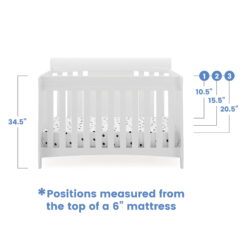 - ADJUSTABLE HEIGHT: Adjustable height mattress support with 3 convenient positions to grow with your baby