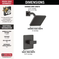 - LIFETIME LIMITED WARRANTY: You can install with confidence, knowing this Delta shower head and shower trim kit are backed by Delta Faucet’s Lifetime Limited Warranty