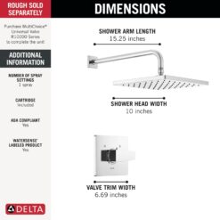 - ROUGH SOLD SEPARATELY: Trim kit only, purchase Delta’s MultiChoice Universal Shower Valve separately to complete the unit (recommended rough-in valve model R10000-UNBXHF)