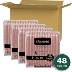 - Depend Night Defense Adult Incontinence & Postpartum Bladder Leak Underwear for Women, extra-large (45–54″ waist), 48 count (4 packs of 12)
