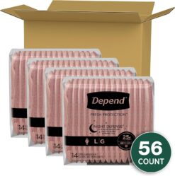 - Depend Night Defense Adult Incontinence & Postpartum Bladder Leak Underwear for Women, large (38–44″ waist), 56 count (4 packs of 14)