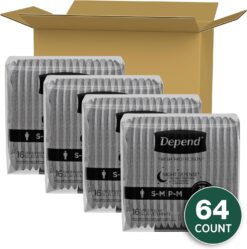 - Depend Night Defense Adult Incontinence Underwear for Men, small/medium (26–34″ waist), 64 count (4 packs of 16)