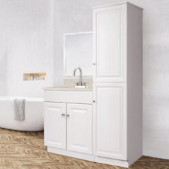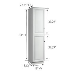 The Design House Wyndham White Linen Tower Cabinet features a durable white finish and satin nickel knob hardware. Perfect for any style home, this cabinet has clean lines and concealed hinges. The 2-door design and adjustable dual shelves make it easy to store small or large items easily. The doors open with a fluid motion, do not whine or creak, and can endure moderate stress. Measuring 19inch by 22.25inch by 84inch, this cabinet is ideal for storing towels, linens, and household supplies. The frameless design provides ample storage and accessibility to store toiletries for the entire family. Traditional construction meshes with subtle modern details to brighten your bathroom or laundry room quickly. This product is perfect for remodeling and will match granite countertops and colored walls.The Wyndham 2-Door Linen Cabinet has a 1-year limited warranty that protects against defects in materials and workmanship.