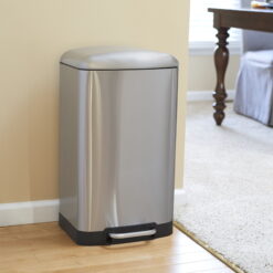 This ultra sleek rectangular stainless steel trash can is slightly smaller than standard kitchen trash cans, so it’s a perfect choice for smaller areas where a larger can might not fit. The can’s design features a rounded top and edges for an elegant seamless look, and the step pedal is a stylish chrome bar, elevating the typical look of a step trash can. The interior of the can features a heavy duty removable plastic bin. The plastic bin prevents anything inside the bin from reaching the exterior of the can, such as bag leaks or spills. The bin also has a bag lock to keep the bag securely in place. The step pedal allows you to open the lid of the trash can hands free, and the stay-open lid feature allows you to keep the lid open when necessary. When you release your foot from the pedal, if the lid is not in the stay-open position, the lid closes softly and silently, protecting the exterior of the can. The exterior of the can is made of stainless steel. The finish of the stainless steel is fingerprint- and smudge-resistant, keeping your trash can looking cleaner longer. The stainless steel is also rust, corrosion and germ resistant. This elegant rectangle stainless steel trash can is sure to be a treasured feature in your home or office for years to come