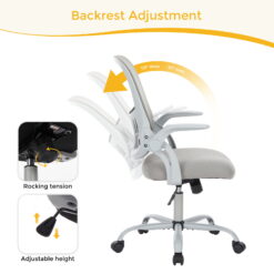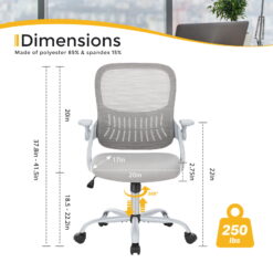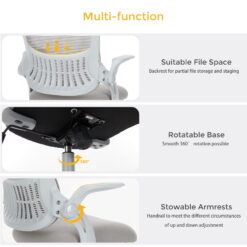 - Adjustable Armrests: This office chair is equipped with flip-up armrests that covered with wide and breathable padding, providing ultimate forearm and elbow comfort. Pulling up the armrests makes it easy to fully push the chair under the table, maximizing space efficiency. Suitable for office, living room, study room, conference room, etc.
