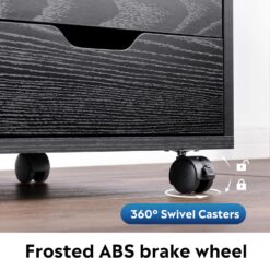 DEVAISE 5-Drawer Wood Dresser Chest with Door, Mobile Storage Cabinet, Printer Stand for Home Office, Black