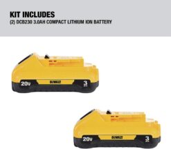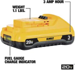 This 20V MAX* 3.0 Ah Battery 2-Pack gives you a pair of our high-capacity compact 20V MAX* batteries. They provide 3.0 Ah capacity with reduced weight, giving you optimum comfort for extended power tool use. DEWALT 20V MAX* battery includes a 3-LED Fuel Gauge system to instantly check battery state of charge. This battery is compatible with all DEWALT 20V MAX* power tools and includes 3-Year Limited Warranty.