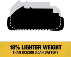 - 18% lighter weight than DCB200 3.0 Ah battery