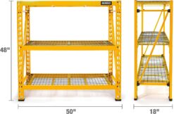- DEWALT 41590 DXST4500-W 3-Shelf Industrial Storage Rack with Wire Decks – 50”W x 18”D x 48”H