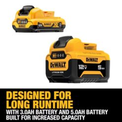 - Designed for long runtime with 3.0Ah battery (DCB124) and 5.0Ah battery built for increased capacity (DCB126)