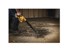 The DEWALT DCE100B 20 Volt max lithium ion cordless blower is ideal for clearing debris from the ground or overhead.
