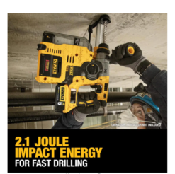This thing eats through concrete and brick like a high school football player at an open buffet! I’ve used the 20v 5Ah battery and even used my 6Ah FlexVolt battery. I didn’t notice much of a difference and that to me means that what you are getting is a solid tool. Some companies sell things to you like, “buy it for this price, but if you REALLY want to see it shine you need this too.” Well I can tell you that is not the case with this drill. Its a beast! The only real flaw I could find with it is that Dewalt should make and include an interchangeable chuck with this that would allow you to remove the SDS chuck on the fly and add a standard chuck in its place so that you can use all your regular and triangle bits. I don’t like being pushed into buying additional products which in this case happens to be a Bosch chuck. Since the chuck isn’t a “pop out” if you will, it forces you to add an extra 4 inches or so onto the length of the tool when attached. This can be the difference between a good job and a messy job since you might have to slant your holes to start then then try and straighten them over the distance of the hole. I also purchased the dust collection attachment. It does what it says it does. Don’t let my love for Dewalt fool you. If it didn’t work I would tell you to move on but this is a great tool. I just love Dewalt because their stuff has always worked for me. Yes, its a bit pricey but its cordless and works with my current 20v and 60v FlexVolt lineup. I’m paying for convenience of not being tied to a cord with the same performance. That to me the cost is justified on each project. Less spent untangling or chasing a cord = higher safety and faster project completion times (and less walking :)). Pros: – Tool feels solid – Minimal vibration – Decent/expected noise during use – Powerful – Great on battery life – Can add on dust collection attachment Cons: – Requires a separate chuck to use standard bits (not included) – SDS to Standard chuck add-on adds approximately 3.5 to 4 inches to the length of the drill making it less useful if not useless in tight spaces