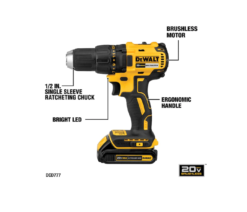 - Kit includes one DCD777 20V MAX compact Brushless drill/driver, one DCF787 20V MAX compact Brushless 1/4-in impact driver, two 20V MAX Li-ion battery packs, one charger and one kit bag