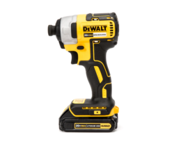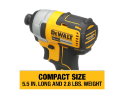 The impact driver’s one-handed loading 1/4-in hex chuck accepts 1-in bit tips. Backed by DeWalt’s 3 year limited warranty.