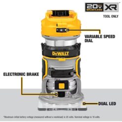 - Includes: (1) DCS334 20V MAX* XR® Brushless Jig Saw, (1) DCW210 20V MAX* XR® Brushless Random Orbital Sander, (1) DCW600 20V MAX* XR® Brushless Compact Router, (1) Charger, (1) Contractor Bag, (1) DCB205 20V MAX* XR® 5.0Ah Battery, (1) DCB203 20V MAX* XR® 2.0Ah Battery