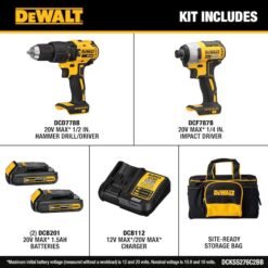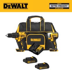 The DCKSS276C2 20V MAX* lithium ion Brushless hammer drill/driver/impact driver combo kit (1.3-Ah) with soft-sided storage features DEWALT® Brushless motors for longer life and run time over brushed motors. The hammer drill has a two-speed transmission and LED lights for working in dark spaces. The impact driver is compact yet offers up to 1500-in lbs of max torque. Soft sided storage bag is durable and includes exterior and interior pockets to help keep you organized while protecting your tools.