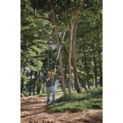 The DEWALT DCPS620B is ideal for many trimming applications with a 15 ft. Maximum Reach. This pole saw can perform 96 cuts per charge on a 4×4 pressure treated pine with a 4.0 Ah 20-Volt battery. A brushless motor delivers power for up to a 16 in. cut. The DEWALT DCHT820B 20-Volt Max Hedge Trimmer has a high output motor and laser cut, hardened steel blades engineered for clean, fast cuts on branches up to 3/4 of an in. thick with 22 in. of blade length.