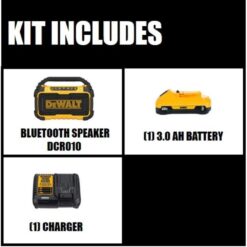 DEWALT DCR010WDCB230C 20V MAX Bluetooth Speaker, (1) 20V MAX Compact Lithium-Ion 3.0Ah Battery, and 12V-20V MAX Charger