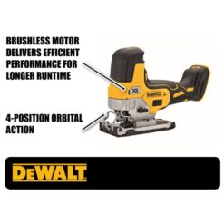 - Brushless motor delivers efficient performance for longer runtime (versus DCS331 Jigsaw)
