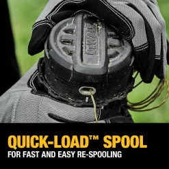 This 20-Volt MAX 14 in. String Trimmer features an innovative folding hinge mechanism that reduces the length by 41% for accessible storage and quick portability. The QuickLoad Spool allows for fast and easy line replacement of the DEWALT 0.080 in. line. The 14 in. swath gives a large cutting radius for knocking down wide sections of overgrowth in one pass. The variable speed trigger offers precise power control, as well as performance and runtime management with the Hi/Lo speed control switch.