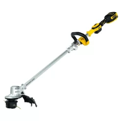 I suggested that my daughter who had just purchased her first home get one of these. I had the opportunity to try hers out when i visited. I was very impressed that it had very ample power and that it has two speeds to allow folks who aren’t that strong to handle it. I have other 20 volt DeWalt tools and am glad that my previously bought batteries will work in this unit. I also advised my daughter that she can do the same when she gets some more power tools. I looked at the non-folding counterpart to this trimmer and it seemed flimsy. I figured it was worth a few extra bucks to get this one. A really nice thing about this tool is that it works well to edge my lawn – I have an old gas powered Weed Eater and was looking for an edger. However, after trying my daughter’s trimmer, I decided to retire my old gasser and join Buck Rodgers in the 21st century and go electric. Now I have a powerful trimmer that functions as an effective edger too. It is nice to see that the battery form-factor will works on so many other DeWalt tools – including the lawn mowers (for when my wife can no longer push our manual reel mower; take it easy there haters – she does it for exercise and does not mind). The only thing I would suggest to make this unit more customer-friendly, is that the screws holding the line guard use Allen-heads the same size as the included wrench for the Auxiliary Handle. That way the user has everything they need to get going right in the box. One final point; I saw a negative reviewer complain about the weight, balance, and lack of ambidexterity of this fine product. To that I say; maybe try one from another maker – it will likely not be as good as this tool (i.e. flimsy, lousy batteries, right-hand preferential, weak warranty, etc., etc., etc). The competition may be a less heavy but for me, when it comes to tools robustness is worth the extra weight.