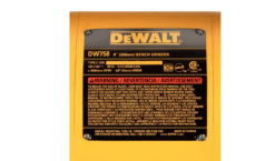 - Includes DW758 bench grinder, 36 and 60-grit wheels, eye shields, spark deflectors, tool rests and manual