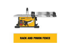 - The Table Saw’s rack and pinion telescoping fence rails make fence adjustments fast, smooth and accurate