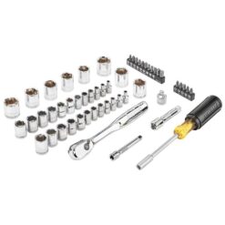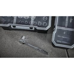 This 53-Piece Mechanics Tool Set includes a wide selection of sockets, socket accessories and driver bits to help complete a variety of tasks. The set is sold inside the 2 large organizer cups within TOUGHSYSTEM 2.0 22 in. Small Tool Box. This set includes a durable 72-tooth ratchet with 5° arc swing for maneuverability in restricted areas. Full-polish chrome provides corrosion resistance and gives these tools a classic look.