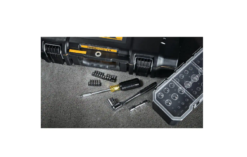 This kit has every socket you’ll need as well as a nut driver with lots of bit adaptors. You can keep the foam holders in the storage bins or remove and keep them separate in the large case – allowing for additional storage in the bins, which have dividers as shown in my photo. Case is waterproof, portable, and rugged. I’m a fan.
