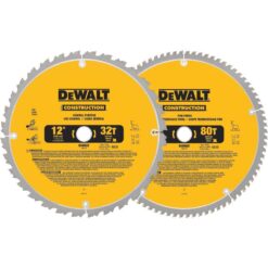 DEWALT DWS716WDW3128P5 15 Amp Corded 12 in. Compound Double Bevel Miter Saw and 12 in. Miter Saw Blade 32-Teeth and 80-Teeth (2 Pack)