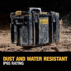 The ToughSystem 2.0 Tool Box has patented auto-connect side latches, allowing for 1 hand operation. It also has 2-piece metal wire front latches for added durability when securing tools inside of the box. This tool box offers 20% more tool storage when used with DWST08300 and DWST08450 as part of a tower. It is IP65 rated for dust and water resistance and has a 110 lbs. load capacity. The tool box contains 2 large organizer cups on the inside with removable dividers for optimal organization. The ToughSystem 2.0 Tool Box is compatible with all ToughSystem products.