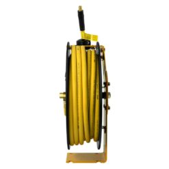 The DEWALT 3/8 in. x 50 ft. Single Arm Hose Reel is suitable for industrial, contractor, or household use. The spring-powered drive feature makes hose retraction quick, automatic, and easy. The 12 position ratchet gearing lock allows for the hose to be pulled to any length. with the self-leveling system, the hose can be wound up easily. The dual-arm and professional grade all-steel construction is very strong and reliable. The hose guide uses a 4-roller design to help reduce hose wear. The rubber air hose stays flexible to work with, even at 40°F below zero, yet still takes the heat up to 150°F without swelling or bubbling. The hose is kink and oil resistant under pressure and has a 3/8 in. x 4 ft. lead in the air hose for easy compressor connection. The DEWALT 3/8 in. x 50 ft. Single Arm Hose Reel is the perfect accessory for any air tool and any air compressor that operates at 300 psi or less.
