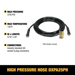 DEWALT DXPA40PH 5/16 in. x 40 ft Replacement/Extension Hose for Cold Water 3700 PSI Pressure Washers, Includes M22 Adapter