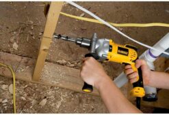 The DWD210G 1/2-inch (13 mm.) VSR Pistol Grip Corded Power Drill has a powerful 10 amp motor with overload protection to drill at 0-1250 RPM in forward or reverse. Constructed with soft grip handle for comfort and housed in metal gear for durability. Corded electric drill Includes 360-degree locking side handle for versatility.