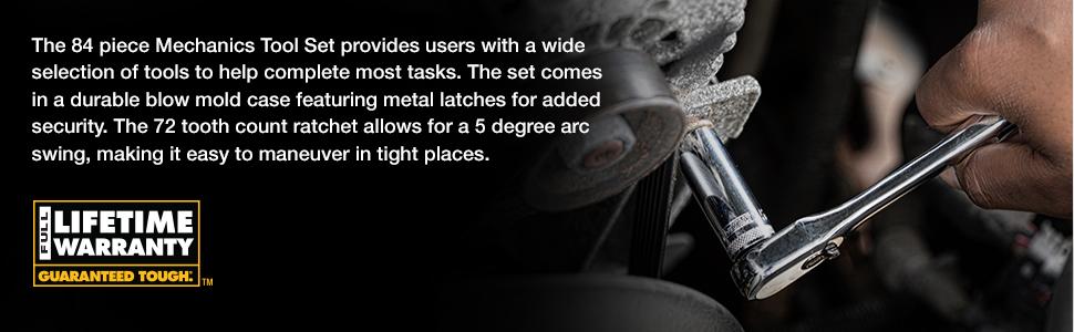 DEWALT Mechanic Tool Set, Includes Ratchets, Drill Bits and Anti-Slip Screwdriver, 84 Piece (DWMT81531)