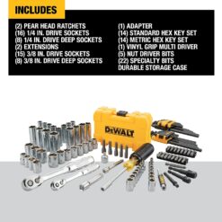 DEWALT Mechanics Tools Kit and Socket Set, 1/4″ & 3/8″ Drive, SAE, 108-Piece (DWMT73801)